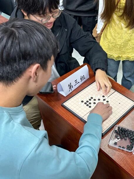 比赛伊始,来自不同专业的国际教育学院学子同台竞技。12组选手两两对弈,棋盘上黑白交错,落子声清脆悦耳。赛场上,有的选手攻势凌厉,步步紧逼;有的则稳扎稳打,以静制动。经过激烈角逐,24名棋手凭借出色的策略与冷静的心态成功晋级。