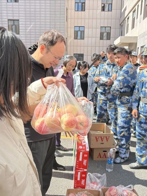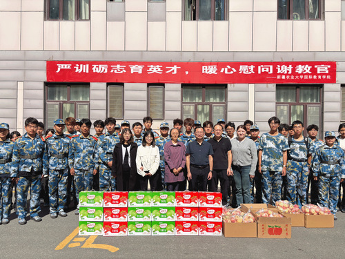 秋阳炽烈,训练场上汗水挥洒,一抹抹迷彩身影正经历着大学第一课的锤炼。为深入落实“三进两联一交友”工作要求,表达学院对2025级新生的深切关怀与对承训教官的诚挚感谢,9月16日,新疆农业大学国际教育学院在亚心校区组织开展了新生军训慰问活动,为刻苦训练的学子与辛勤付出的教官送去清凉与鼓励。 当日下午,新疆农业大学国际教育学院院长陈英杰,副院长柳卉,海外项目办主任张文强,学生工作办公室副主任迪丽努尔·居热提,辅导员韩喆、姜丽丽等一行早早来到亚心校区3号宿舍楼前等候。