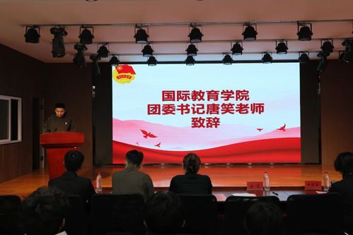 仪式上,国际教育学院团委书记唐笑老师首先致辞,他向光荣加入团组织的新团员们表示热烈祝贺,并勉励大家要以共青团员的标准严格要求自我,珍惜荣誉,勇担重任,在新的人生赛道上学思践悟、奋勇争先。食品科学与药学学院团委书记王晓彤老师随后宣读了新团员名单,每一位被念到名字的青年学子脸上都洋溢着激动与自豪的神情。